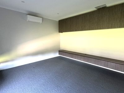 The adjoining meals/family zone provides ample room for family gatherings and flows out to the covered rear patio for outdoor entertaining. A seperate living/theatre room with built in bespoke cabinetry provides a great spot for movie nights or watching your favourite sport.